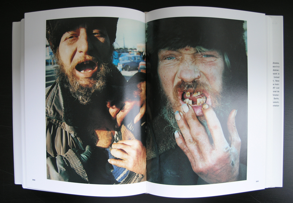 Mikhailov had his first exhibition at the end of the 1960s. After the KGB found nude pictures of his wife he was laid off his job as an engineer and started to work full-time as a photographer. From 1968 to 1975 he shot several series documenting everyday scenes, the best known of them being the Red Series. In these photographs he mainly used the colour red, to picture people, groups and city-life. Red symbolized the October Revolution, political party and the social system of Soviet society. It is often said that within those works critical elements toward the existing political circumstances can be found.In Mikhailov’s Klebrigkeit (1982), he added explanatory notes, or diary-like text. In Case History, considered an important part of contemporary art, he examines the consequences of the breakdown of the Soviet Union for its people. He systematically took pictures of homeless people. It shows the situation of people who after the breakdown of the Soviet Union were not able to find their place in a secure social system. In a very direct way Mikhailov points out his critique against the “mask of beauty” of the emerging post-Soviet capitalistic way of life.