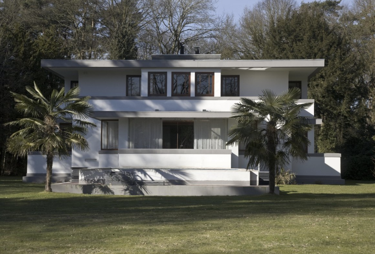 There is DE STIJL in the Netherlands , Arts, poetry and architecture were all executed along linear ways. Where Mondrian used the rectangle. Robert van ‘t Hoff exeuted his architectural along the same disciplines as the other artist of the DE STIJL group. It shows…. a little bit inspired by Frank Lloyd Wright this is one of the best dutch early architectural designs there is. The Rietveld Schroder Huis in Utrecht is more DE STIJL, but this one is far more beautiful. There are publications on DE STIJL and Rietveld available at www.ftn-books.com and since a few weeks there is the classic building cardboard kit by Piet Vollaard available too. Published by Uitgeverij 010 in the mid eighties this is a highly collectable item.