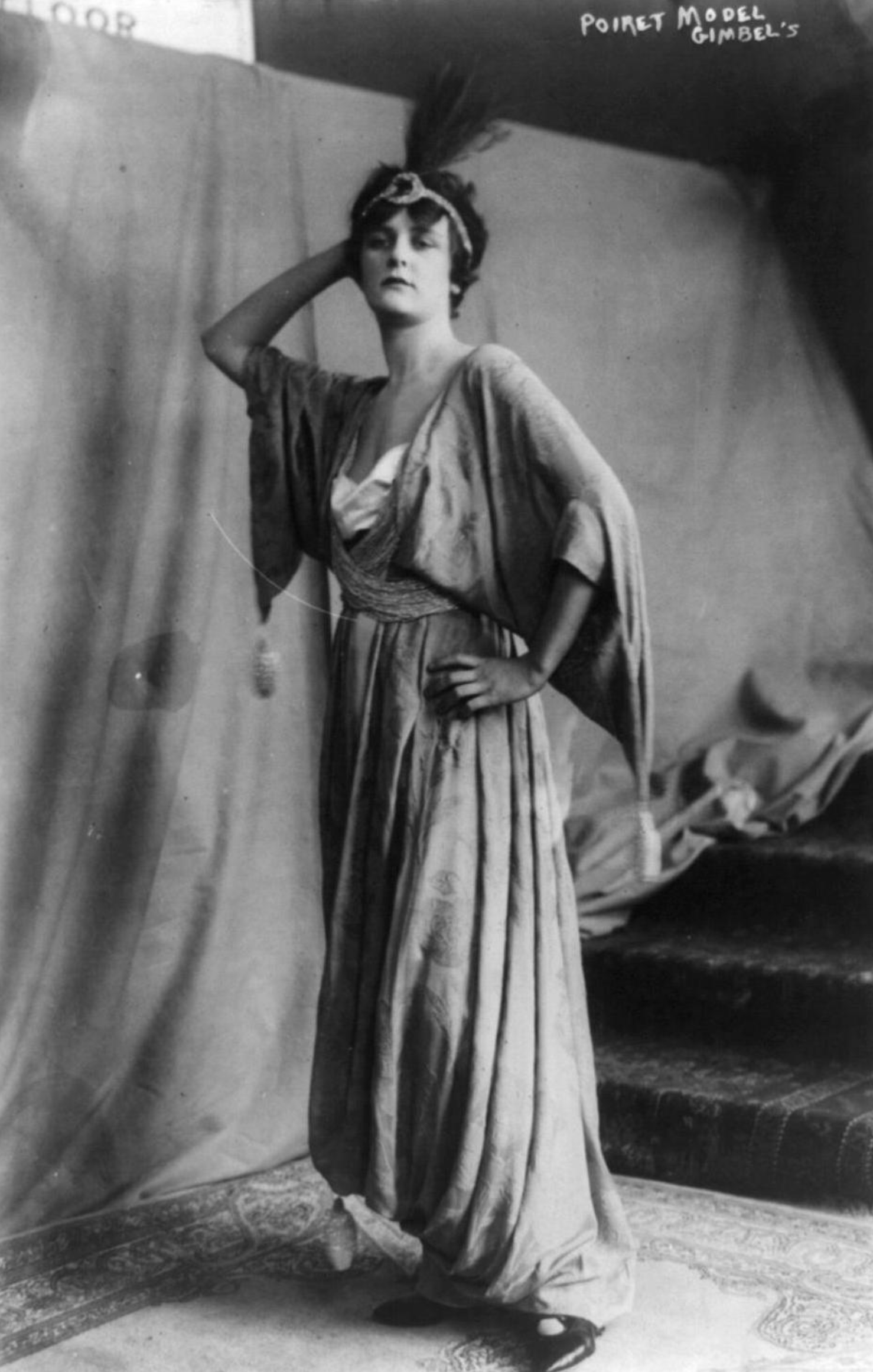 Poiret functioned as a kind of one-man cultural scene. He collected art, gave lavish costume parties and made astute use of the press while laying the groundwork for fashion design as a modern art and a modern business. His clients included Sarah Bernhardt, Nancy Cunard, Isadora Duncan, Colette and Helena Rubinstein. Man Ray photographed Peggy Guggenheim in a Poiret gown and turban. Edward Steichen’s first fashion photographs were taken of models in Poiret’s atelier.