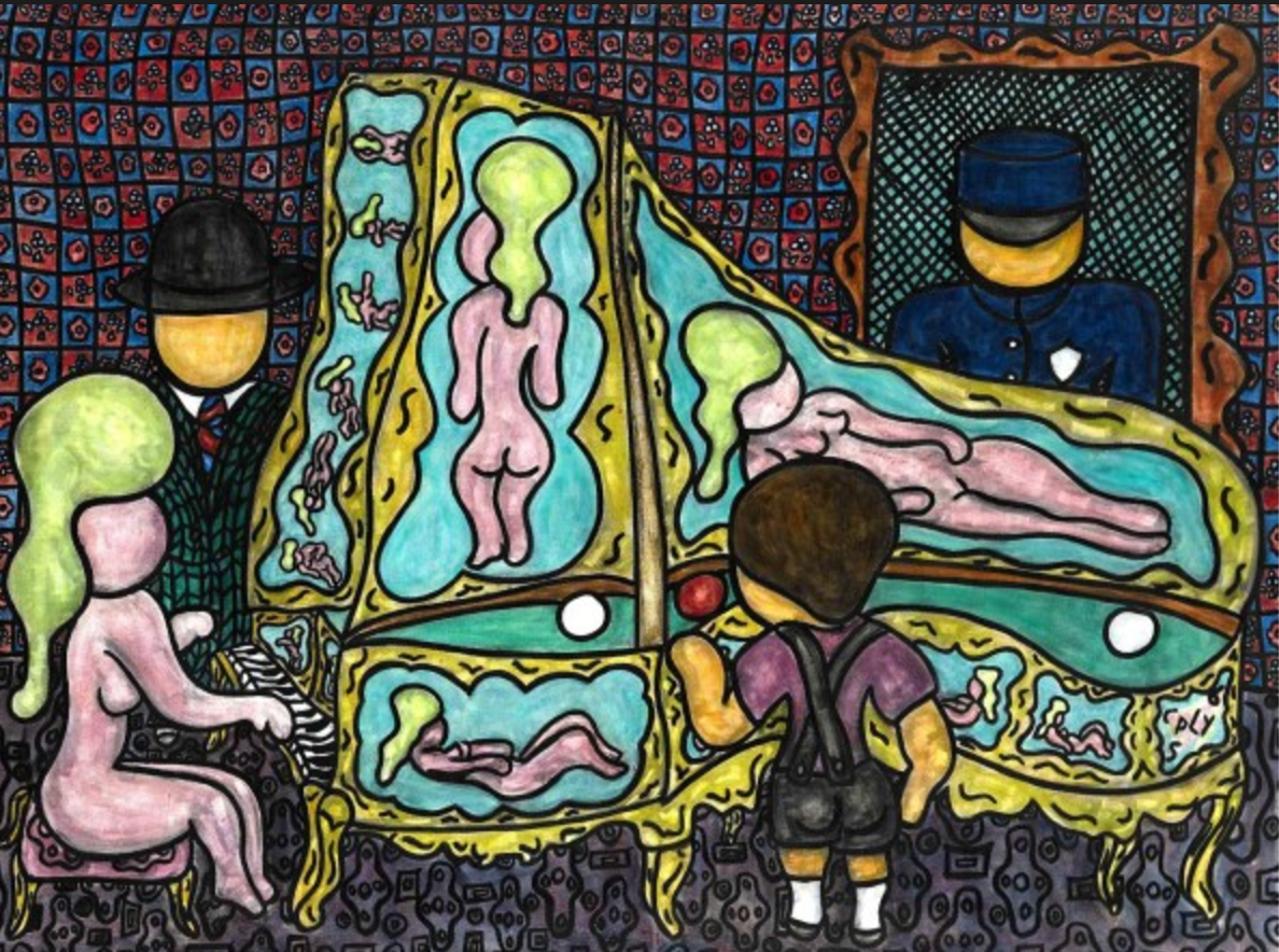 Copley’s works in the 1970s focused on his own understating of differences and challenges between men and women in romantic and sexual relationships. His works were now erotic, even pornographic. In 1974 he exhibited these new works at what was then the New York Cultural Center in Columbus Circle, New York in a show titled “CPLY X-Rated.” These pieces were a sudden change from his previous romantic whimsical periods. The American public had difficulty with the material, for which Copley expressed, “Americans… don’t know the difference between eroticism and pornography. Because eroticism has always existed in art. And pornography has never necessarily been in art. Copley’s experienced greater feedback in Europe, where the work was then well received. In conjunction with the New York Cultural Center Show there was a special “CPLY X-Rated Poster and Catalog.
