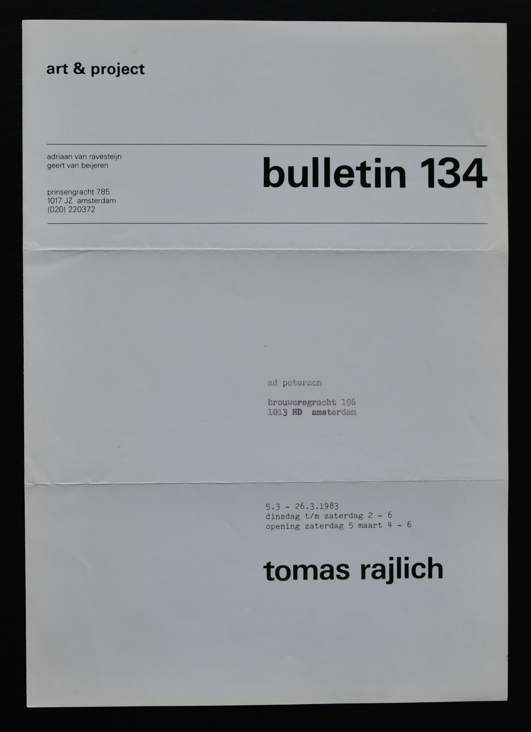 The following blog has certainly to do with my personal fascination for the works of Tomas Rajlich. Rajlich has been a long time favorit of us and i was very happy that i finally could add the Art & Project Bulletin 134 from 1983 to our collection. Within the 4 pages the pages 2 and 3 are devoted to a beautiful golden composition with a fine mazed grid. This is a great composition and shows what Rajlich was doing at that time. Gold painted minimal compositions were painted and on it a grid in pencil was drawn. IN almost all cases the grid was 5 x 5 cm. squares in pencil. The Bulletin 134 is available at www.ftn-books.com