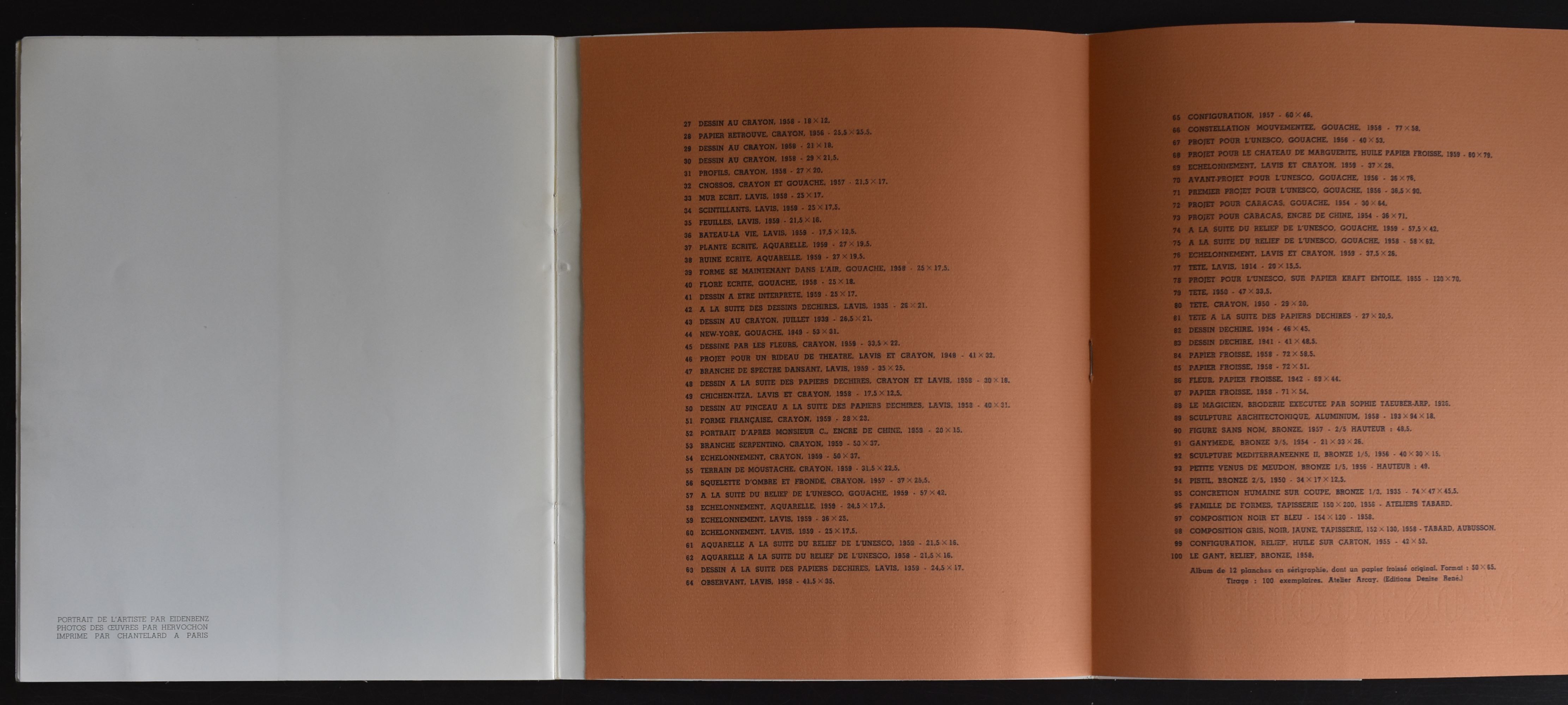 Jean Arp was at that not the name he is nowadays but his works were collected by some who thought his works were great. If ever there is an Arp for sale, it draws interest from all over the world , but at the time of this 1959 exhibition at Denise Rene there were so many great works for sale. Drawings, Paintings, sculptures, bronzes….all were presented and for sale. I can not offer an original Arp at www.ftn-books.com, but this great and rare catalogue comes for sale at my site today.