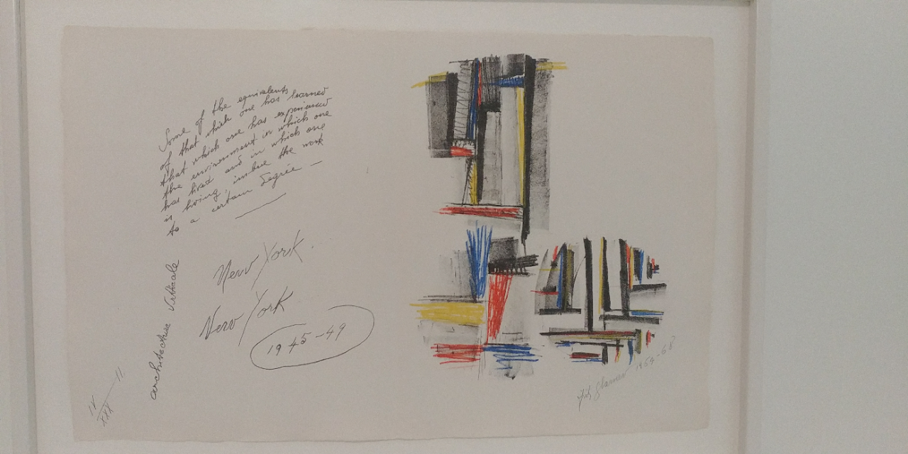 In my last blog on the Haus Konstruktiv i ended with ( to be continued ) and that was not without reason. When i visited this museum in Zurich, I mentioned that i was disappointed but that is only part of the story, because i was also very surprised by an unexpected beautiful reconstruction of the Fritz Glarner office he made for the Rockefellers. They were admirers and according to the thank you note they sent were very happy with the result and…..i can fully understand why. Floor, walls and ceiling are covered with Glarner designs and the large table in the middle with the chairs makes the room complete and one of the most beautiful reconstructions i ver have seen. This room only is worth the visit of the Haus Konstruktiv….don’t miss it when you are in Zurich.