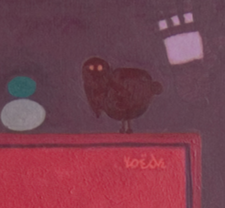 It is a typical Roëde element which makes his paintings immediately recognized. A fun fact, but also a part of the paintings which has the function of an extra signature, because the Roëde bird is one of a kind and no other bird in the world has this shape and can be found in so many colours.