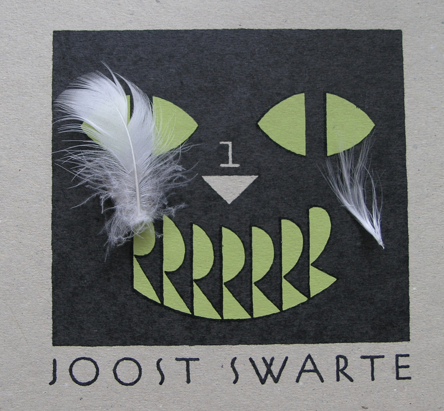 Joost Swarte has drawn the specially executed prints, designed the special container, supervised the printing and ….. perfection…..put a little feather within the container of the bird which was eaten by the cats. A superb publication resulted and is nowadays sought and collected by many.