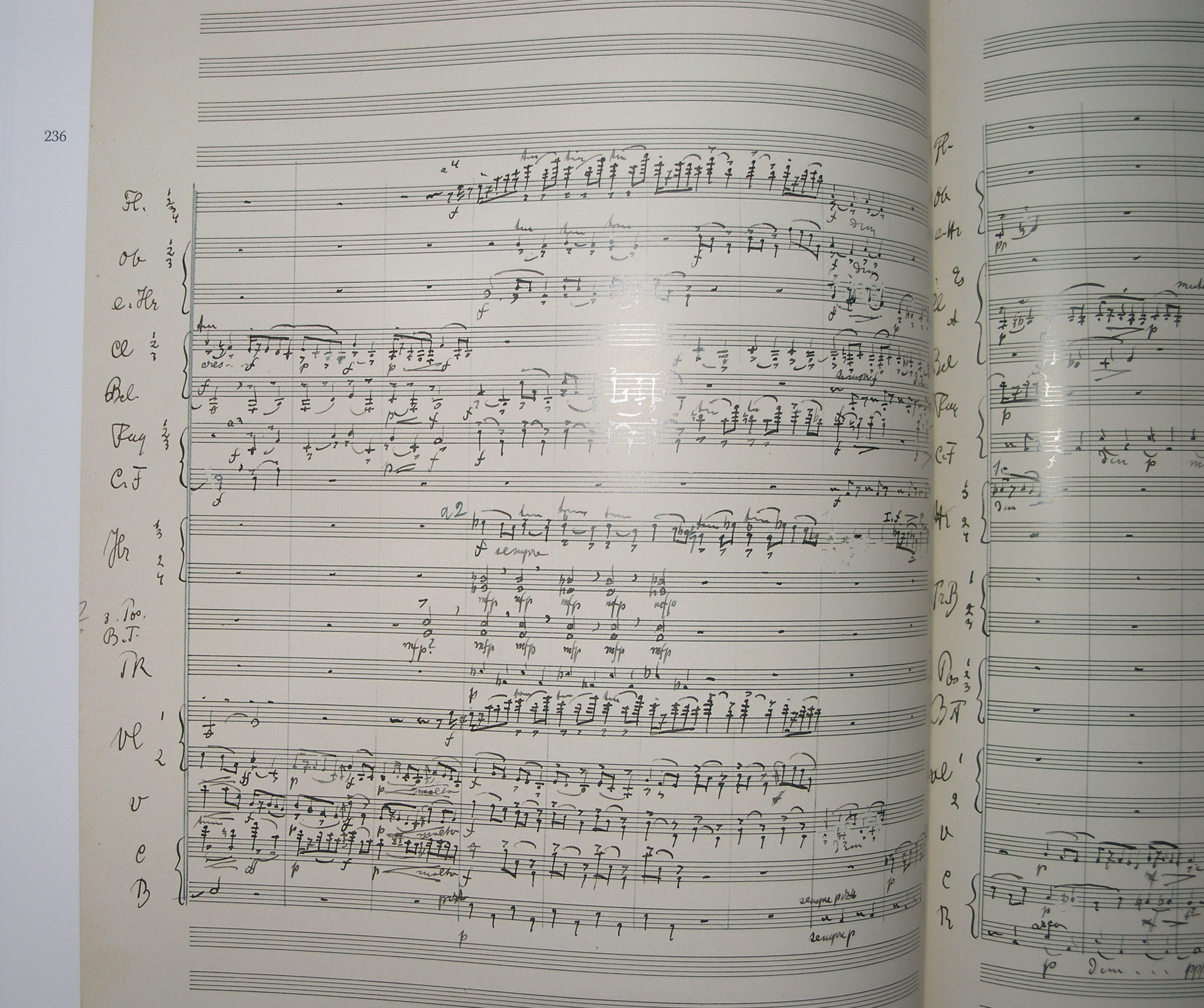 Why this blog on Mengelberg? It was about 20 years ago that well before the “craze” of huge and impressive publications ( Newton, Araki) that this tremendous large publication was published on the occasion of the Mengelberg Festival 1995. It is indeed a huge publication. Weight being well over 5 kg and published in a cardbox blue linnen covered container with a text plublication and in a different volume the musical score by Mengelberg with his annotations . This is the perfect facsimile.
