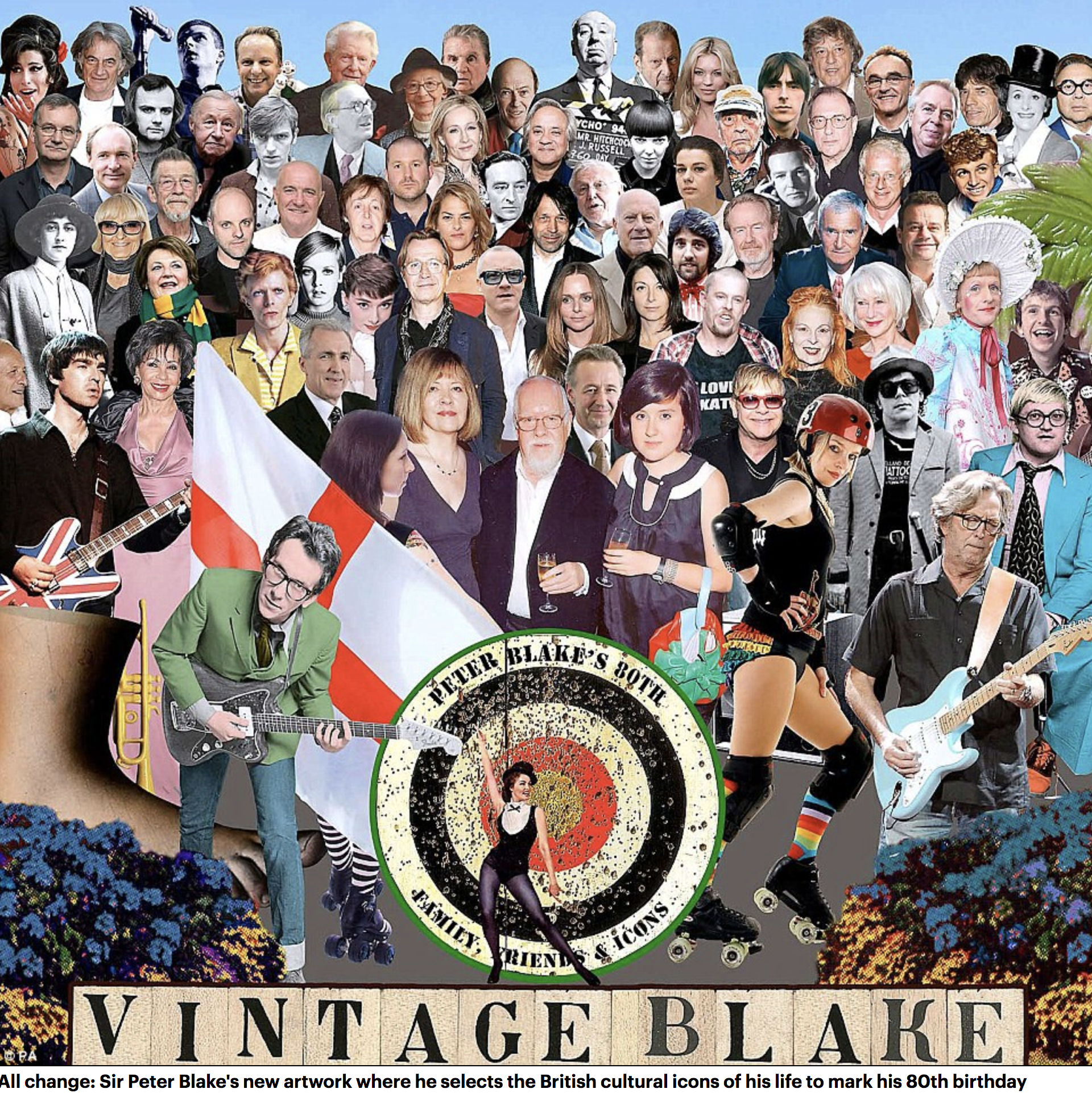 And even Sir Paul McCartney has been relegated to the third row – one behind his daughters Stella, the fashion designer, and Mary, the photographer. Blake, known as the Godfather of Pop Art, has put his own face and images of his family where the Fab Four once stood.
