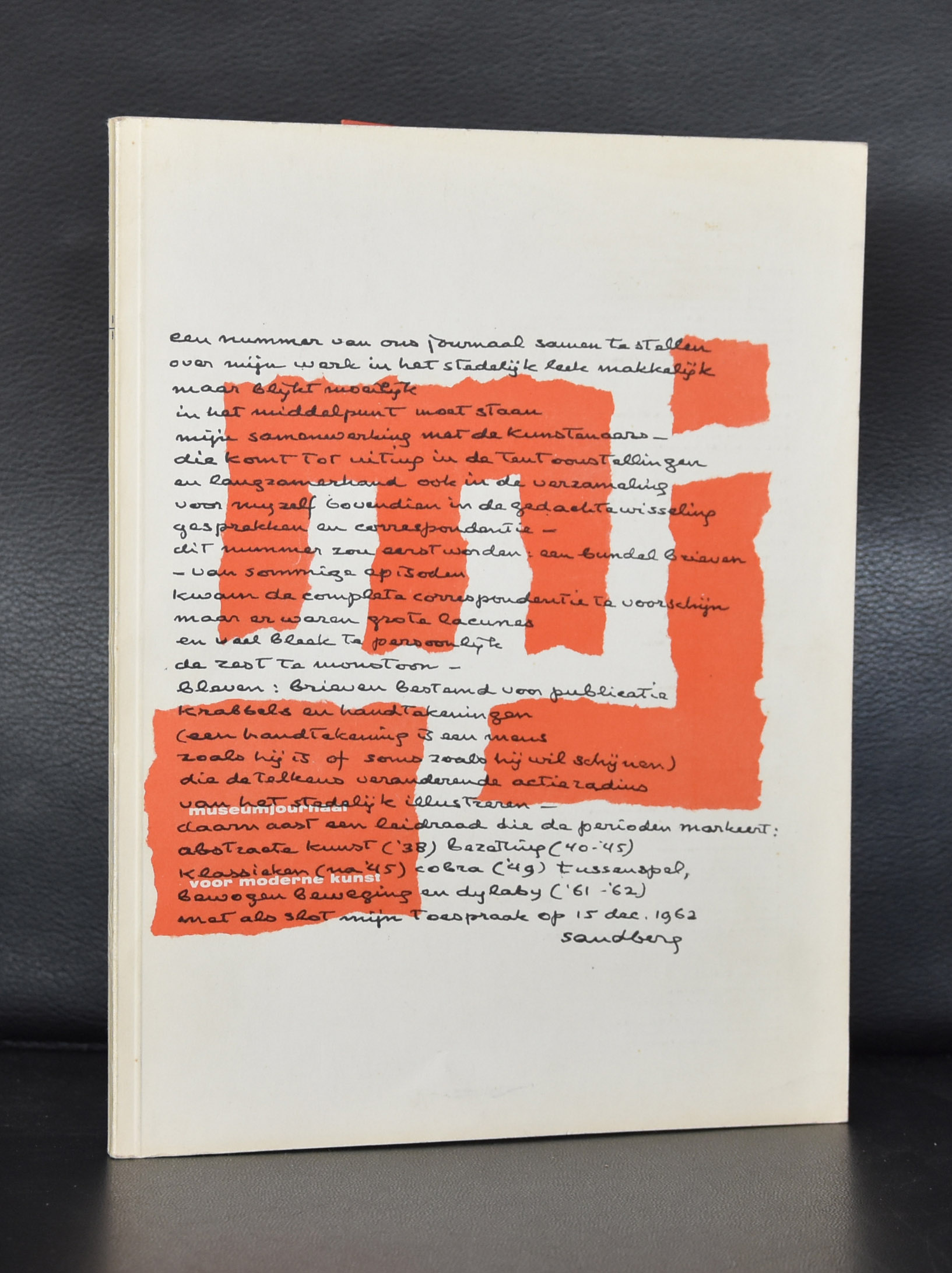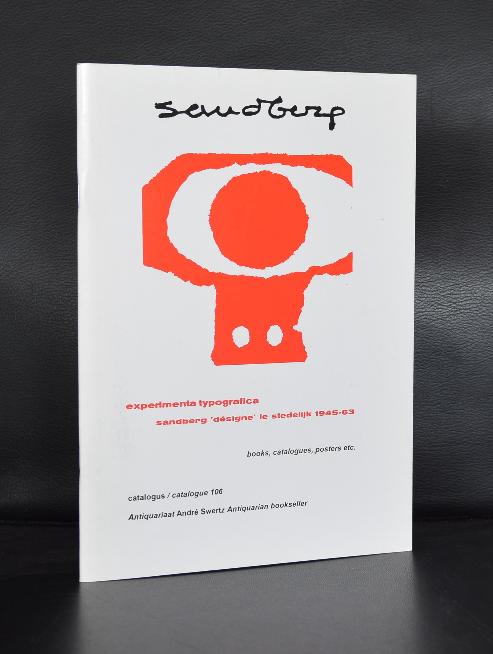 It is almost a year since I tipped the readers of my blog to start to collect Willem Sandberg typography. Since, i have found some interesting examples of his excellent typography which i want to present to you. For those of you who are new in reading this blog. Willem Sandberg was a designer /typographer who became director of the Stedelijk Museum Amsterdam for a very long period ( 1945-1963) who designed many of the publications during this period of time and who contacted and presented many of the most famous 20th century artists in the Stedelijk Museum. His publications are characterized by the use of plain ( carton like papers) and the lettering looks random, made out of torn papers. But these are very accurate designs. You can find many sources of information on Sandberg on the internet, but one of the best is still the site of the Stedelijk Museum Amsterdam. ( www.stedelijk.nl ). Now here are some new and old additions to the inventory of www.ftn-books.com