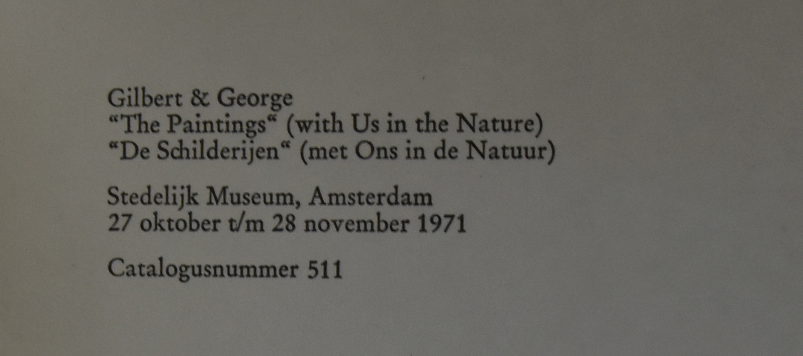 If you ask me…what is the rarest of all Stedelijk Museum catalogues?…the answer probably will be the 1971 THE PAINTINGS catalogue by Gilbert & George, which is published with no. 511. It is only an 8 page catalogue, measuring 8.3 x 5.9 inches, but this one is really a rare collectable artist book. I finally found one for my inventory and it is now for sale at www.ftn-books.com