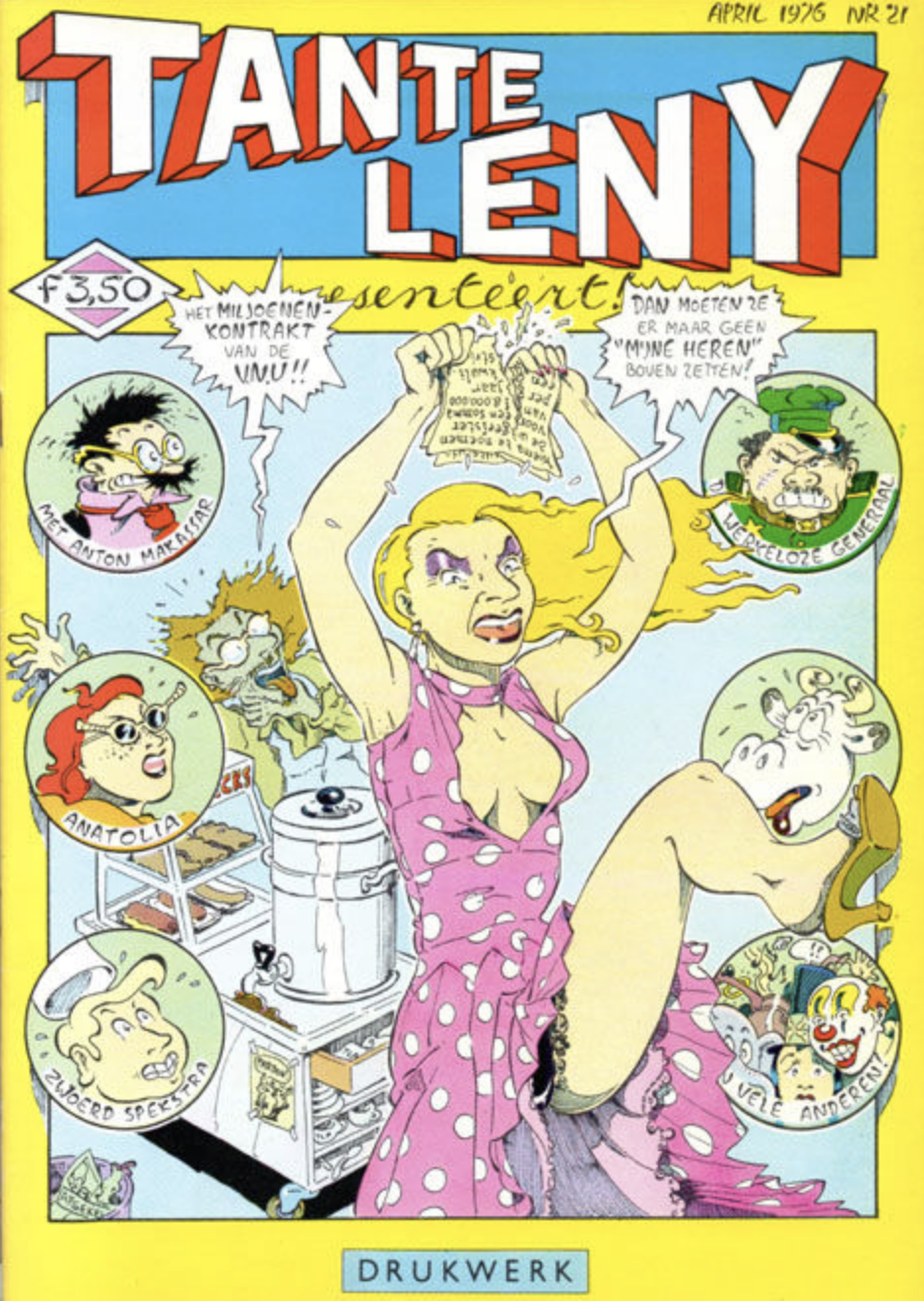 Between 1972 and 1974 Buckinx drew the comic ‘De Familie Aepebroeck’ for the VPRO magazine Vrije Geluiden. The comic deals with the chaotic and intimate escapades of the Bertus and Truus Aepebroeck and gives a good portrait of Holland in the 1960s and 1970s. Harry Buckinx was one of the artists involved in the ‘Toon en Toos Brodeloos’ strip, which a team of seven artists produced in 1976 for VPRO-Gids, the magazine of broadcasting company VPRO. Each episode was a satirical story about one of the Dutch broadcasting companies, drawn by a different artist. Buckinx did the one about VPRO, while the other artists were Joost Swarte (AVRO), Evert Geradts (KRO), Joost Troost (EO), Rob Gorter (NCRV), Aart Clerkx (VARA) and Fred Julsing (TROS). The stories were collected in a book by Har van Fulpen’s Drukwerk in 1976.