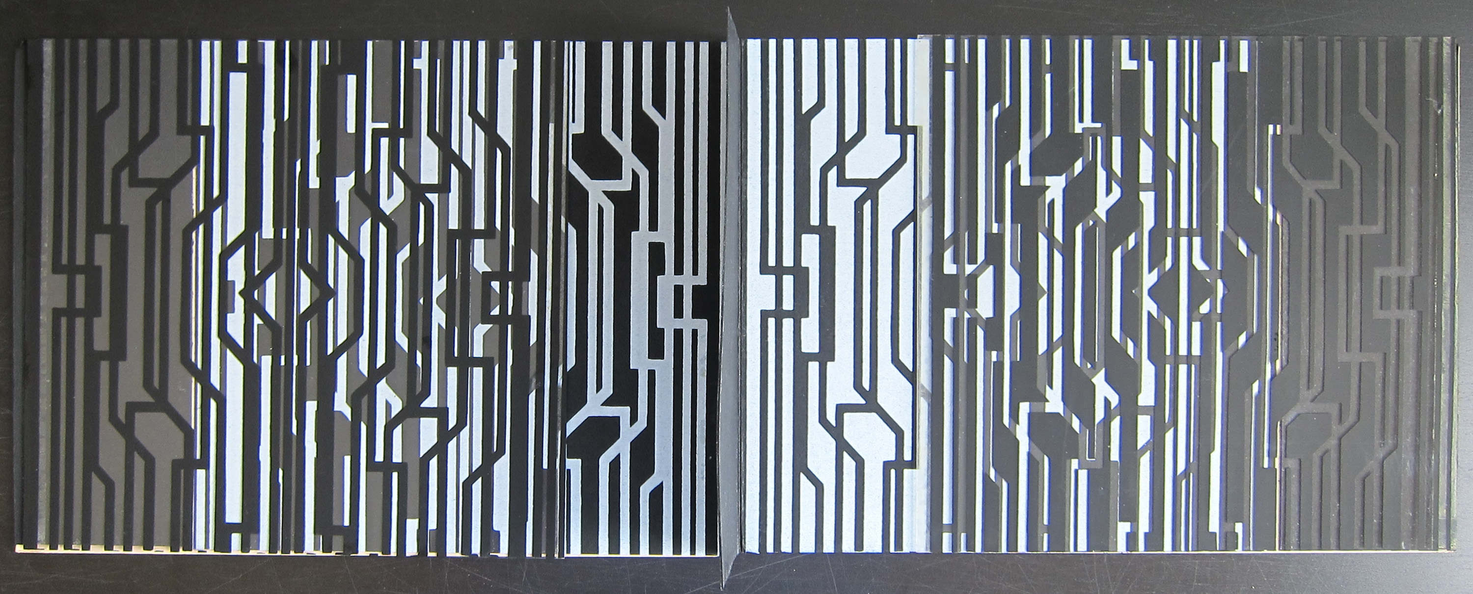 I have had a weakness for the art of Victor Vasarely. It must have been one of my first encounters with Modern Art in the Mid Sixties. In the window of an art dealer in de Hoogstraat in Den Haag there were on display signed serigraphs by Vasarely and since OP Art and Pop Art were popular i took an interest in these Vasarely too. I could not afford them, but found some 20 years later that Vasarely published highly affordable book publications which had the same quality as his prints. I have been collecting and adding Vasarely books and special publications to my collections ever since and yesterday i added another special publication. It is the 1961 Hanover gallery Vasarely catalogue. Not too many pages ( 32) , but what makes this special is the extra silkscreened inlay which can be combinedx together with the first print within the catalogue. My guess is not many of this rare cataloguue will have survived and what makes it even more special is the pristine condition of both silkscreened print and bookpage. Here are the photographs of this special and highly collectible Vasarely catalogue which is now available at www.ftn-books.com