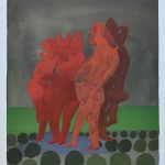 An Italian self-taught artist whose unconventional painting encompassed an erotic, and often sexually aggressive universe populated by characters who present themes of sexual identity with specific references to female sensuality. Her work was relatively little known until curator Lea Vergine included several pieces in a 1980 exhibition, prompting Rama to revisit her earlier watercolour style. This is the time Fuchs noticed her qualities and presented her in 2 separate exhibitions in the Stedelijk Museum. The importance of Rama must not be undersestimated , because she had contact and knew artists like Warhol, Bunuel and Man Ray. NOt being influenced by them but inspired she developed a style and art of her own , for which she was rewarded isn 2005 with a large retropective exhibition in the Fondazione Sandretto Re Rebaudengo in her birthplace of Turin. A great artist who is also present in the inventory of www.ftn-books.com.