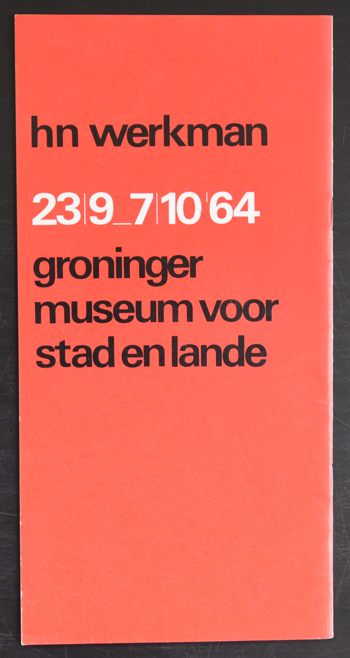 On the cover a bold and typical Werkman print which emphasized the graphic quality of the catalogue. The back…. a typical red with clear black and white lettering. This is in my opinion one of the very best graphic designs ever made in the Netherlands and i am proud to still have a copy for sale of this beautiful and splendid Wim Crouwel catalogue.