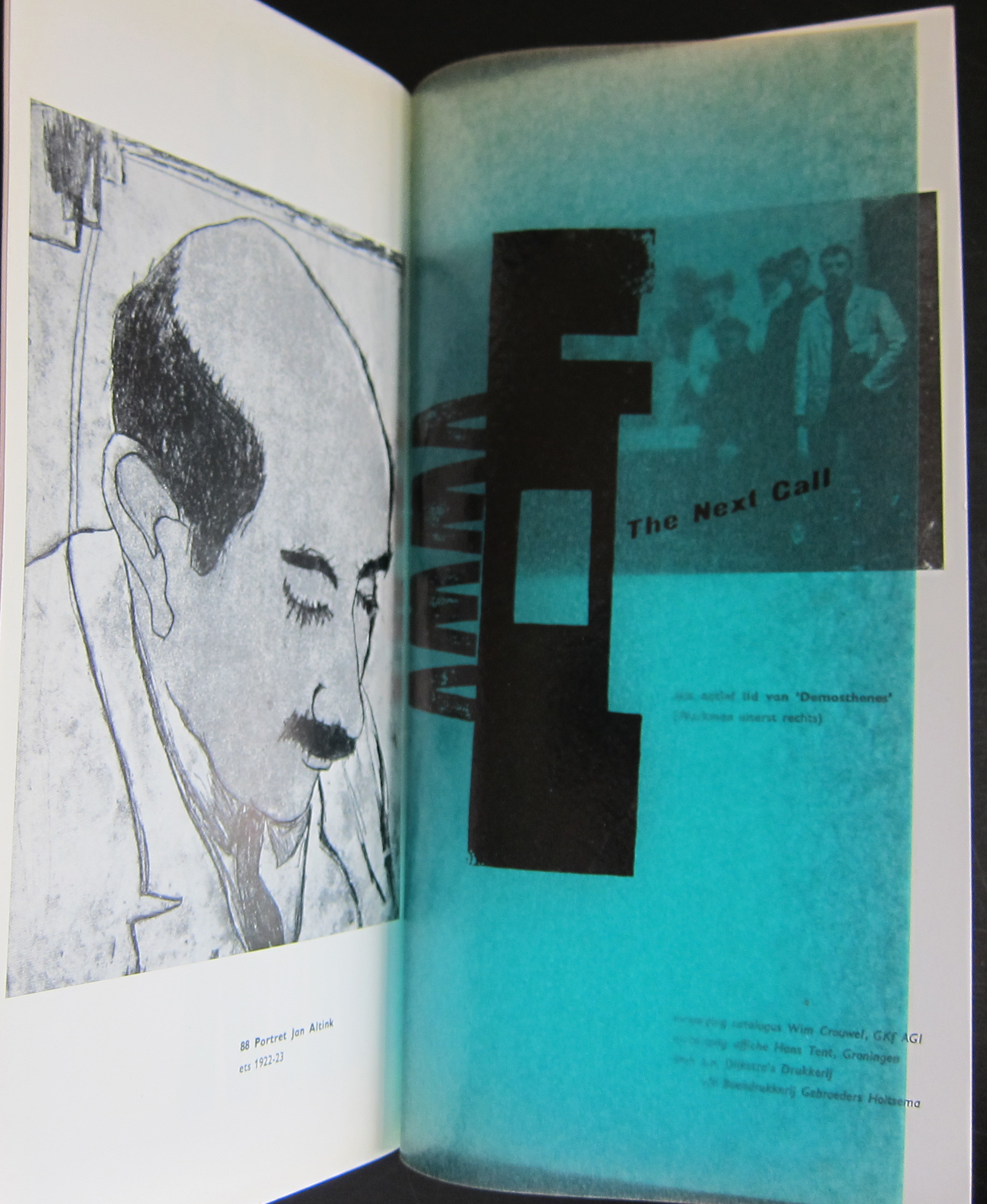Some combinations are hard to beat and this one is surely a classic. Wim Crouwel was not yet promoted to the position of designer of the catalogues of the Stedelijk Museum Amsterdam and had just left the van Abbemuseum with his designs. In the in between period he did some free lance works and one of these was the catalogue he designed for the H.N.Werkman exhibition of 1964 in the Groninger Museum and this catalogue became the standard for all his future designs. He chose a slim sized catalogue, but within the book he used some of the papers which he had used in the van Abbemuseum catalogues and would use again for the Stedelijk Museum catalogues. Making it simple but still complex.
